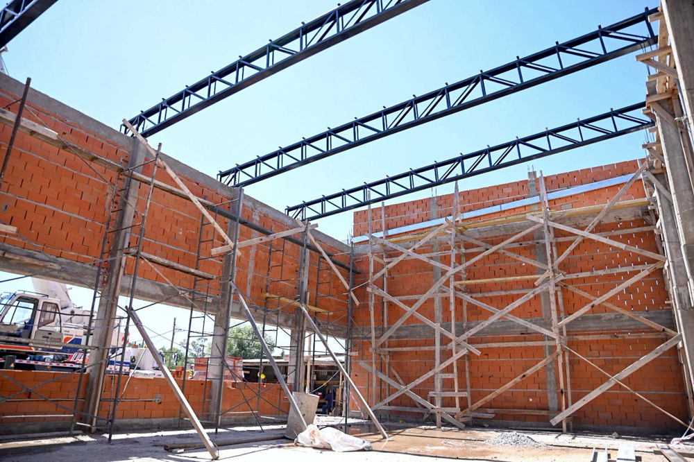 Redacción ASW | El intendente Nicolás Mantegazza supervisó el montaje del techo en el nuevo edificio de las calles Asamblea y Gainza. La obra, reactivada por la gestión de Axel Kicillof ante el freno de la obra pública nacional, permitirá que la institución deje de compartir instalaciones con la Primaria 15.