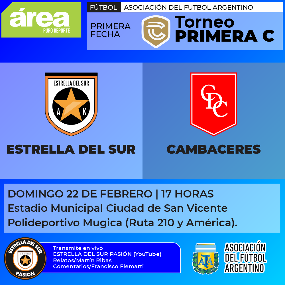 El debut para Estrella del Sur será el próximo domingo 22 de febrero a las 17 horas, frente a Deportivo Cambaceres de Ensenada, en el flamante Estadio Municipal Ciudad de San Vicente.