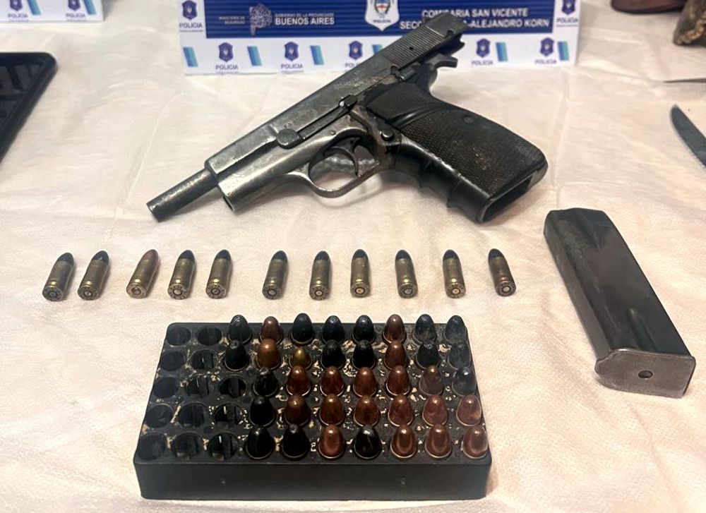 El hallazgo más alarmante se produjo en el Objetivo 1, donde los efectivos incautaron una pistola Browning 9mm con numeración suprimida y un total de 48 municiones del mismo calibre. Además de armas, el lugar funcionaba como un centro de desguace, donde se recuperó una motocicleta Corven Triax con pedido de secuestro activo por robo, un block de motor de un Peugeot 308 con numeración limada, butacas y diversas autopartes.