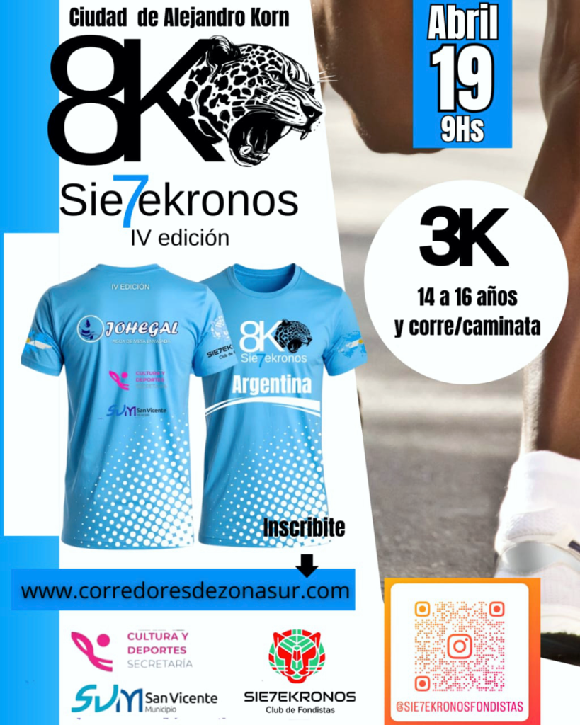 Alejandro Korn | El domingo 19 de abril, la ciudad de Alejandro Korn se vestirá de gala para recibir la cuarta edición de la carrera 8K Sie7ekronos. La jornada deportiva comenzará puntualmente a las 9, teniendo como punto de partida y epicentro el Parque Urbano El Viejo Casal, también conocido como La Masía. Se espera que el evento atraiga a una gran cantidad de participantes, consolidándose como uno de los encuentros atléticos más destacados de la Zona Sur.