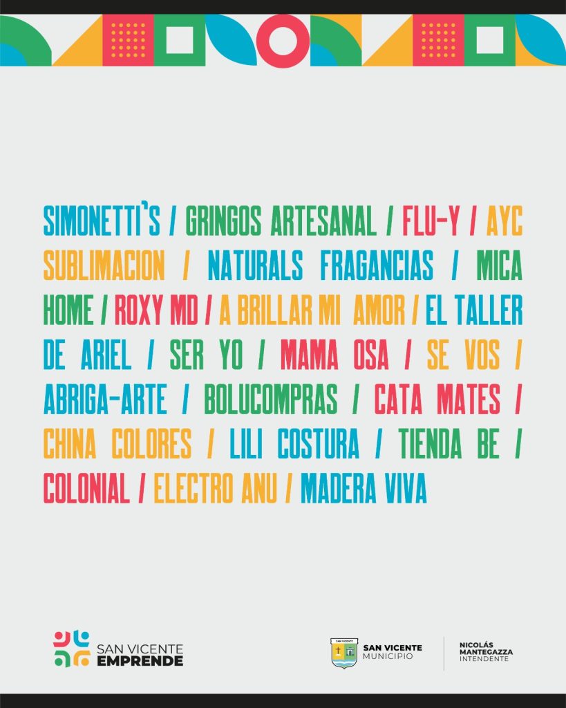 Entre los expositores confirmados que darán vida a esta edición se encuentran nombres como Simonetti’s, Gringos Artesanal, Flu-Y, Naturals Fragancias y Mica Home. También participarán emprendimientos como Roxy MD, El Taller de Ariel, Mama Osa, Abriga-Arte, Cata Mates y Madera Viva, asegurando una oferta diversa que refleja el empuje emprendedor del municipio de San Vicente.