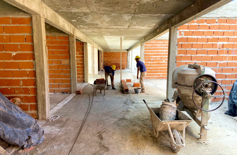 La empresa encargada de la obra ya ejecutó los trabajos preliminares como los cimientos, la estructura de las columnas, encadenados y el llenado del techo con hormigón, procediendo a efectuar en la actualidad, las divisiones de sus distintas áreas.