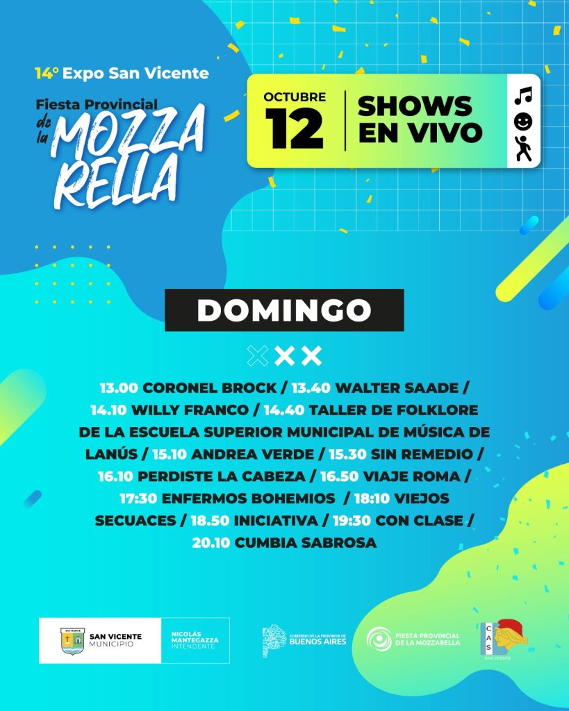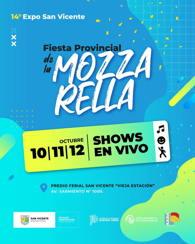 San Vicente | Del 10 al 12 de octubre, el Predio Ferial Vieja Estación de San Vicente será nuevamente el epicentro de una de las celebraciones más esperadas de la región: la 14ª Fiesta Provincial de la Mozzarella, un evento que reúne producción, gastronomía, cultura y espectáculos para toda la familia, con entrada libre y gratuita.