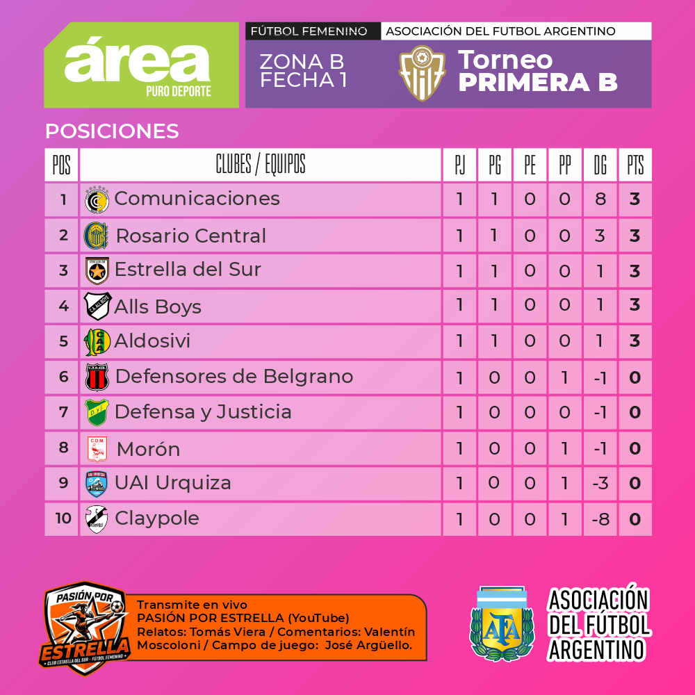 Finalmente, la fecha inaugural del certamen dejó los siguientes resultados, configurando un inicio de temporada sumamente competitivo: All Boys se impuso como visitante ante Defensa y Justicia 1 a 0; Estrella del Sur hizo lo propio 1-0 ante Morón; Aldosivi venció a Defensores de Belgrano 2 a 1; Comunicaciones aplastó 8 a 0 a Claypole; y Rosario Central se llevó los tres puntos en su visita a la UAI Urquiza por 3 a 0. Las cartas ya están sobre la mesa y Estrella del Sur ha demostrado que está lista para dar pelea.