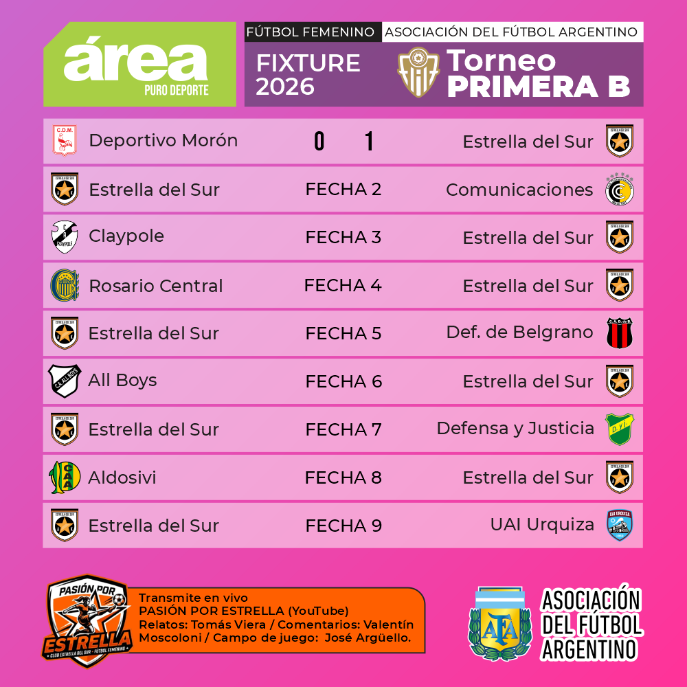 Pontevedra | La espera terminó para el fútbol femenino y la jornada de ayer, sábado 11 de abril, marcó un inicio con el pie derecho para Estrella del Sur. En el marco de la primera fecha del torneo de la Primera División B de la AFA, el equipo de Alejandro Korn viajó hasta Pontevedra para enfrentar a un siempre exigente Deportivo Morón. En un partido donde la efectividad y la resistencia defensiva fueron las claves, las visitantes lograron quebrar el marcador de forma temprana y sostener la ventaja con uñas y dientes hasta el silbatazo final.