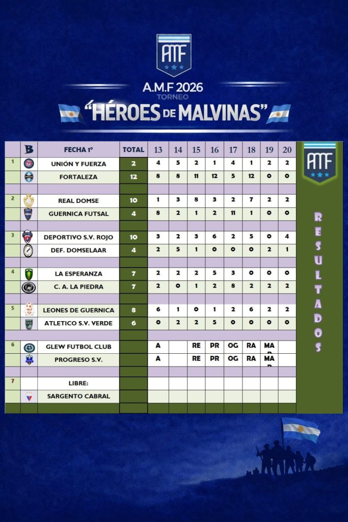 El pasado sábado 11 de abril, la pelota volvió a rodar en las canchas de la región con el inicio oficial del torneo «Héroes de Malvinas», correspondiente a la rama de futsal infantil de la Liga Metropolitana de Fútbol. La jornada inaugural estuvo cargada de emoción y un excelente marco de público, donde los clubes renovaron sus ilusiones en un certamen que, más allá de lo deportivo, rinde un sentido homenaje a nuestra historia.