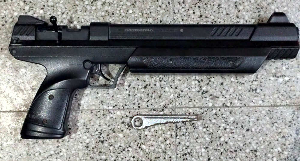Dentro del bolso, la policía halló un arma de fuego marca Strike Point, calibre 22 (5.5mm), la cual presentaba su numeración suprimida. Además, se secuestró una herramienta de fabricación casera conocida vulgarmente como «yuga» (mango de una llave francesa limada con forma de llave de arranque), utilizada habitualmente para el robo de motocicletas.