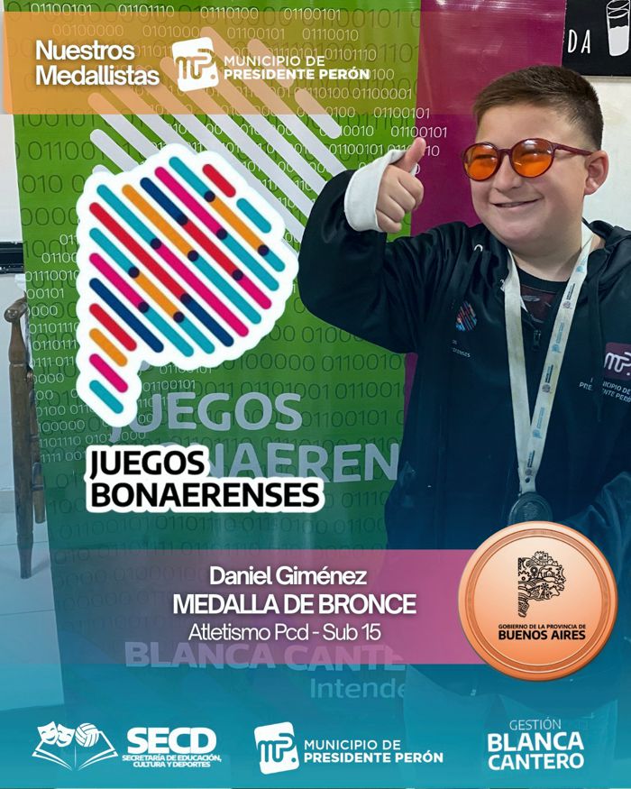 Poco después, Bruno Ortiz consiguió la medalla de plata, mientras que Daniel Giménez, en la disciplina salto en largo no visual sub 13, también subió al podio con una medalla de bronce.