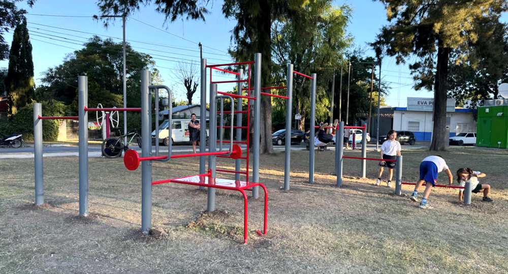 Por otro lado, la propuesta deportiva del parque se vio fortalecida con la llegada de estaciones de calistenia triple. Este nuevo equipamiento está orientado a quienes practican entrenamiento funcional y deporte urbano, complementando las postas de salud que ya funcionaban en el predio y transformando a la plaza en un circuito más completo para la actividad física gratuita.