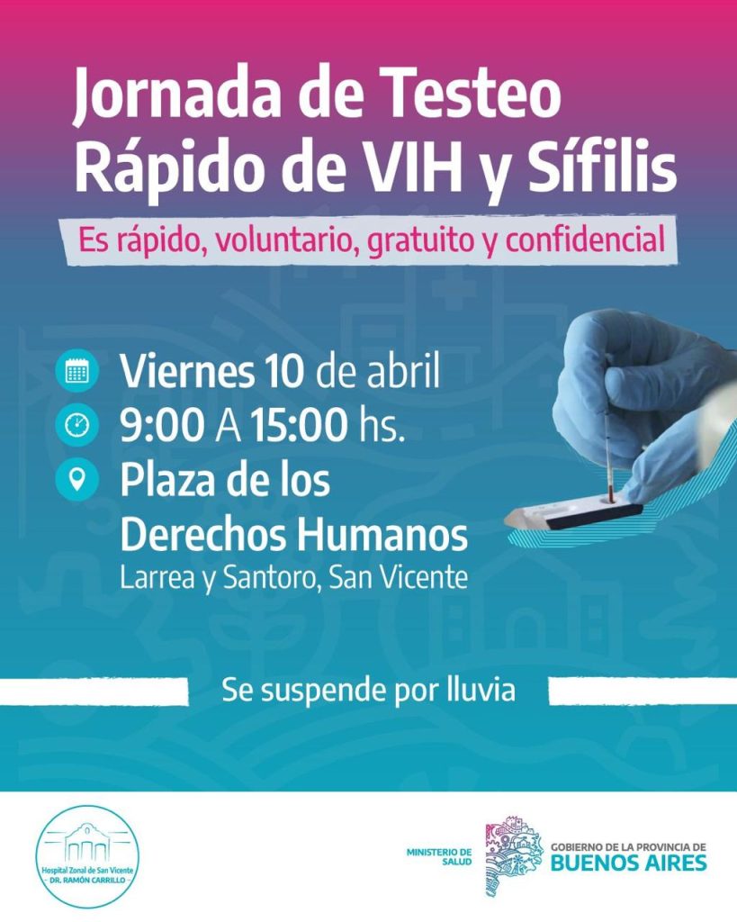 San Vicente | El compromiso con la salud pública suma un nuevo capítulo en San Vicente. Este viernes, entre las 9 y las 15 horas, se llevará adelante una importante jornada de detección temprana de VIH y Sífilis. La cita tendrá lugar en la Plaza de los Derechos Humanos, situada en la intersección de Larrea y Santoro, dentro del predio del Hospital Provincial Dr. Ramón Carrillo.