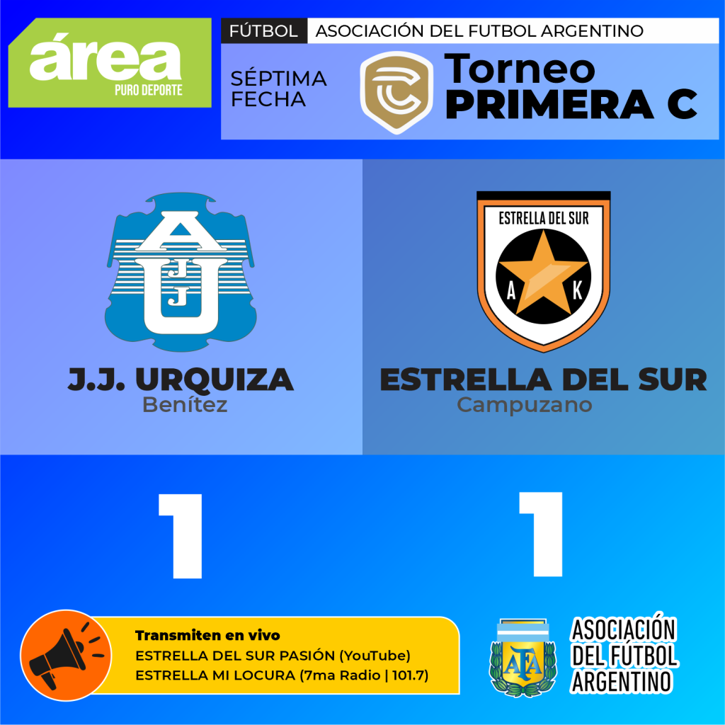 Caseros | En la tarde de ayer, el Estadio de J.J. Urquiza, ubicado en la localidad de Caseros, fue el escenario de un encuentro vibrante y cargado de tensión. Por la séptima jornada del torneo de la Primera C, Estrella del Sur visitó al «Celeste» en un duelo que prometía emociones fuertes debido a lo que había en juego para la tabla de posiciones. El partido no defraudó y mantuvo la incertidumbre hasta el último segundo de adición.