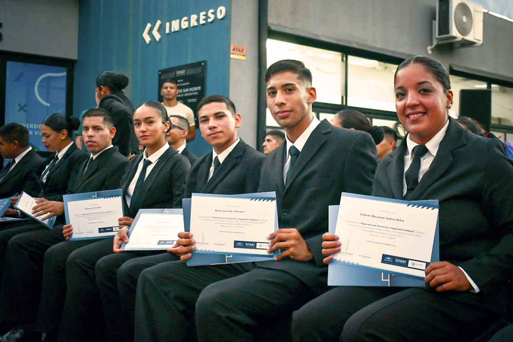 San Vicente | Este viernes se celebró en la Universidad de San Vicente (UNSAV) el acto de egreso de 47 cadetes pertenecientes a la segunda promoción de la Diplomatura en Prevención y Seguridad Ciudadana.